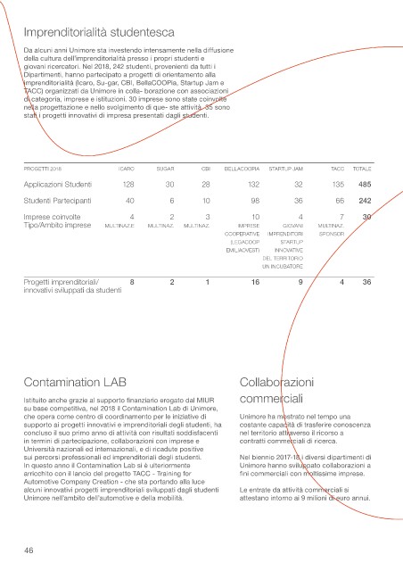 su base competitiva, nel 2018 il Contamination Lab di Unimore,