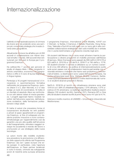 L’internazionalizzazione di Unimore è inoltre testimoniata dal nume-
