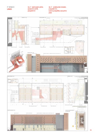 II° GRADO tav. 3 - pianta piano primo, tav. 4 - pianta piano secondo, UNI03 sezioni a-a e B-B, prospetto n-o, prospetti S-E sezione prospettica aula primo piano 79