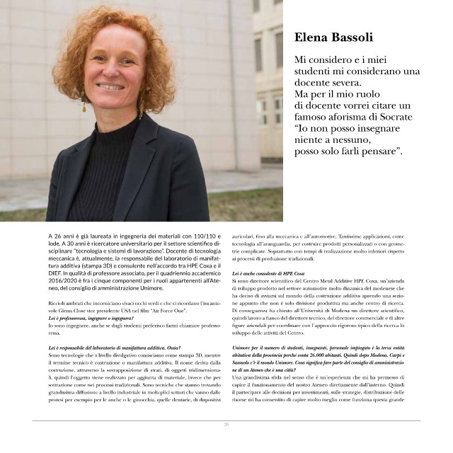 il termine tecnico è costruzione o manifattura additiva. Il nome deriva dalla Sassuolo c’è il mondo Unimore. Cosa significa fare parte del consiglio di amministrazio-