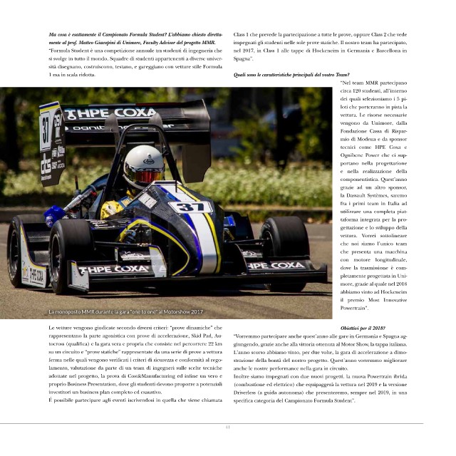 “Formula Student è una competizione annuale tra studenti di ingegneria che nel 2017, in Class 1 alle tappe di Hockeneim in Germania e Barcellona in