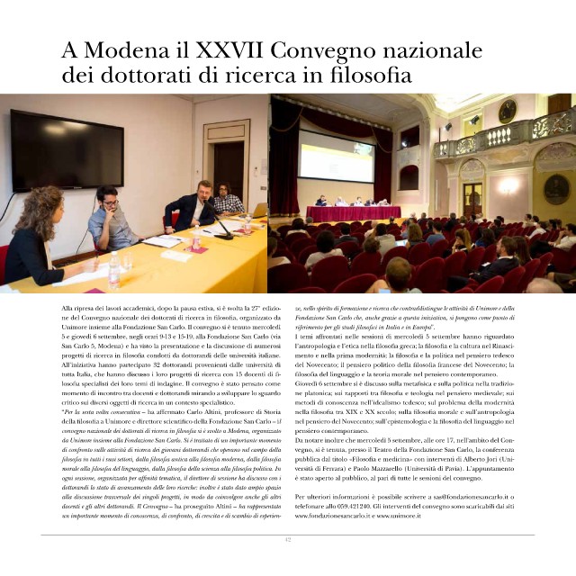 ne del Convegno nazionale dei dottorati di ricerca in filosofia, organizzato da Fondazione San Carlo che, anche grazie a questa iniziativa, si pongono come punto di