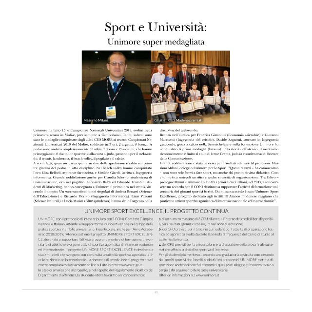 mico 2018/2019, l’Ateneo sostiene il progetto UNIMORE SPORT EXCELLEN- nica ed agonistica svolta durante il periodo di frequenza del Corso di studio al