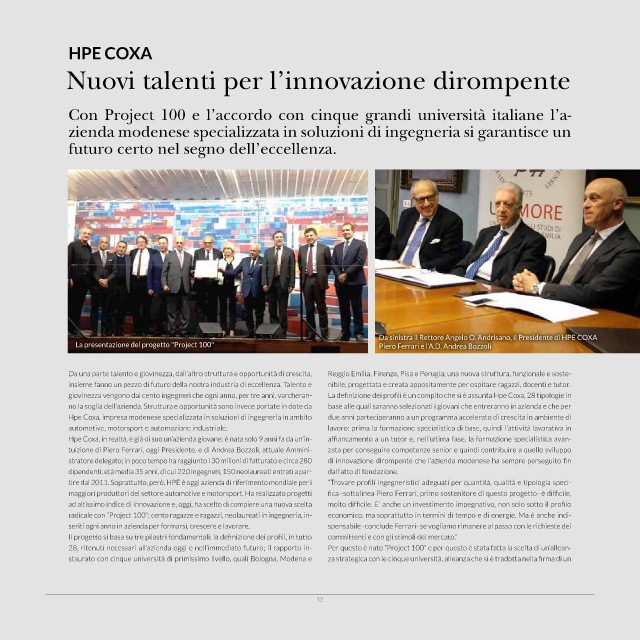 Hpe Coxa, impresa modenese specializzata in soluzioni di ingegneria in ambito due anni parteciperanno a un programma accelerato di crescita in ambiente di