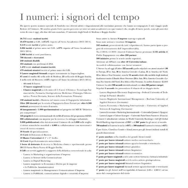 Rettore di Unimore. Mi sembra giusto finire questo percorso nei miei sei anni accademici con quei numeri che, meglio di tante parole, sono gli autentici