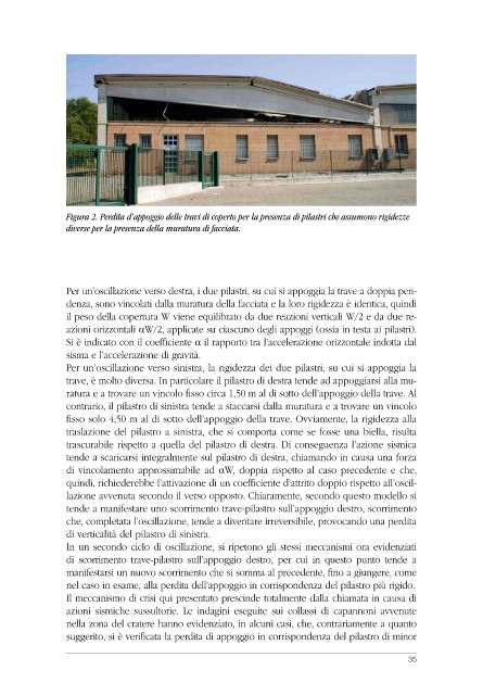 Figura 2. Perdita d’appoggio delle travi di coperto per la presenza di pilastri che assumono rigidezze