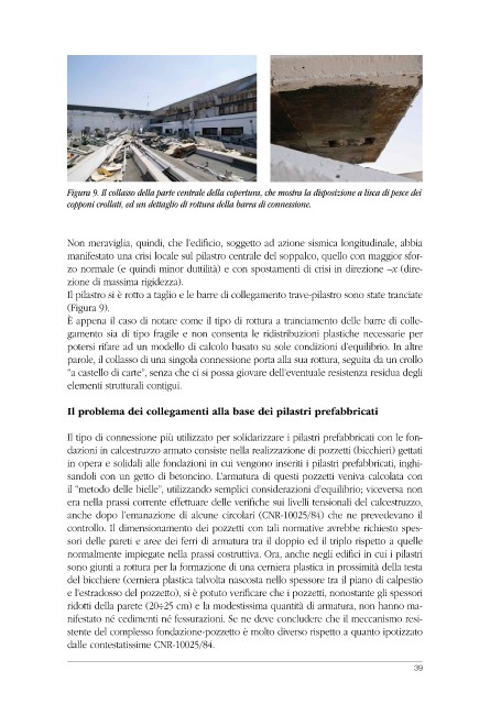 copponi crollati, ed un dettaglio di rottura della barra di connessione.